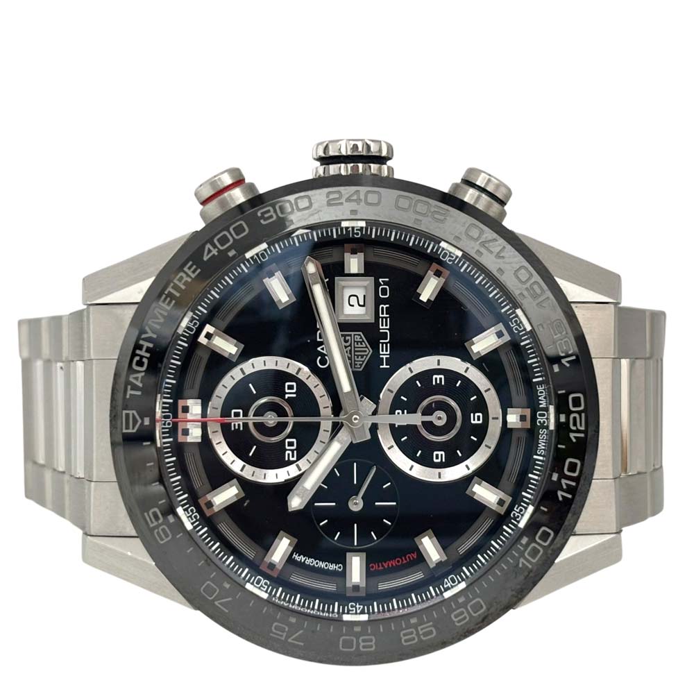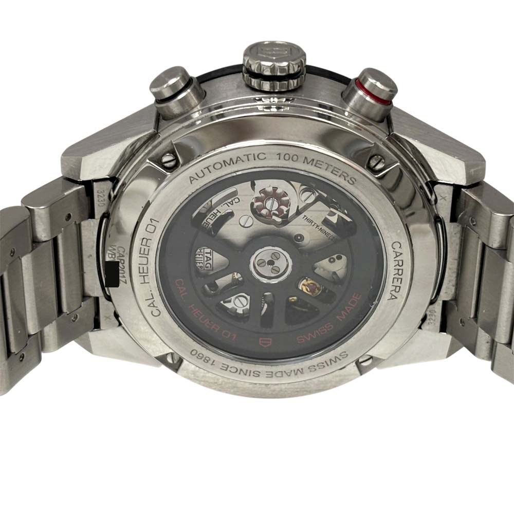 | 仕様 | 駆動方式:機械式(自動巻き) ムーブメント:ホイヤー01 振動数:28,800振動 パワーリザーブ:約50時間 平置き日差:+8秒/日 (当店測定。お客様のお手元環境での測定結果を保証する記載ではございません。) 防水性能:100m防水 タグホイヤー カレラ ホイヤー01 メンズ クロノグラフ 自動巻き スポーツウォッチ スケルトンウォッチ SwissMade tachymeter シースルーバック デイト表示 ステンレススチール 防水 スイス製 ブラックダイヤル ルミナス針 |