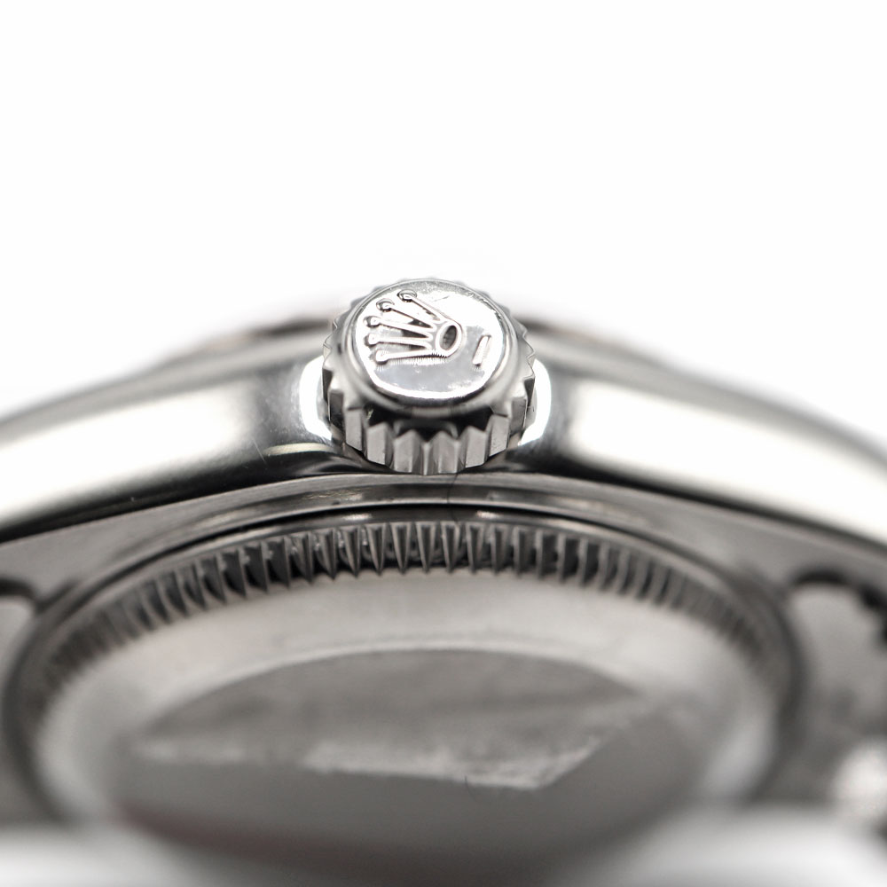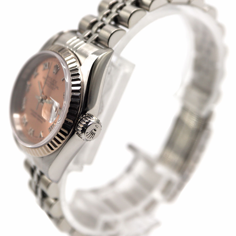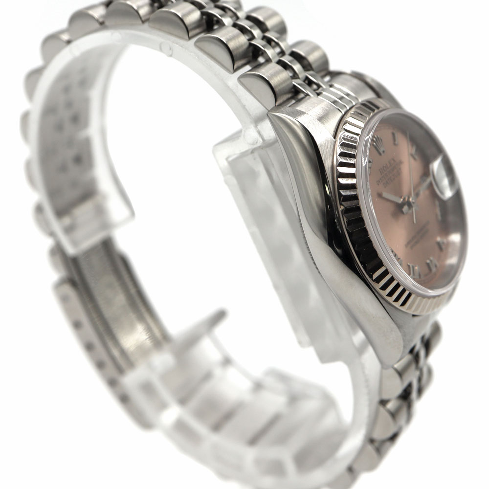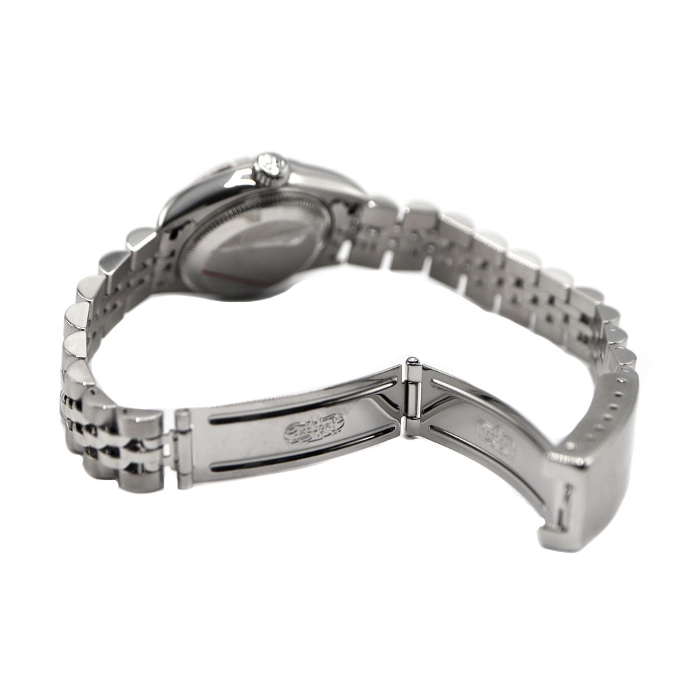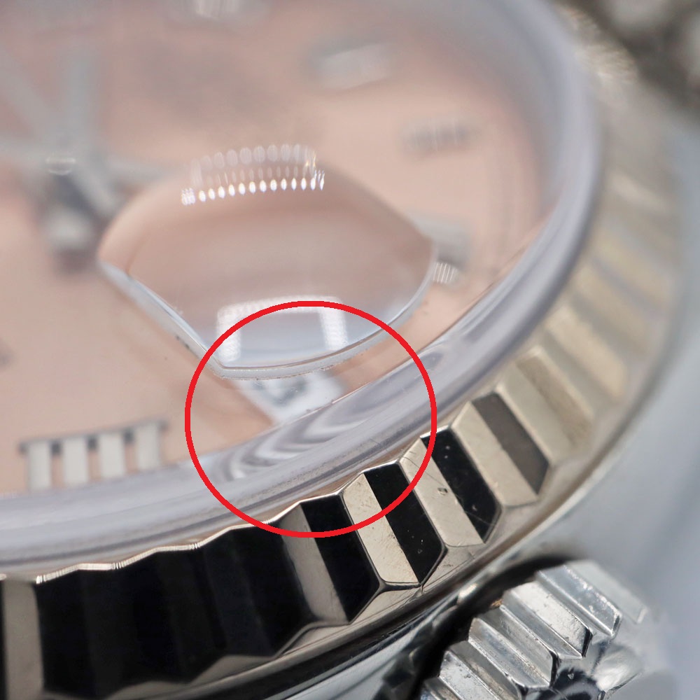 デイトジャストとは午前0時頃瞬時に日付が変わるデイトジャスト機構、全回転式ローターを搭載したパーペチュアル機構、ロレックス三大機構を搭載したモデルです。 ピンクの文字盤が非常にシンプルかつ上品です。