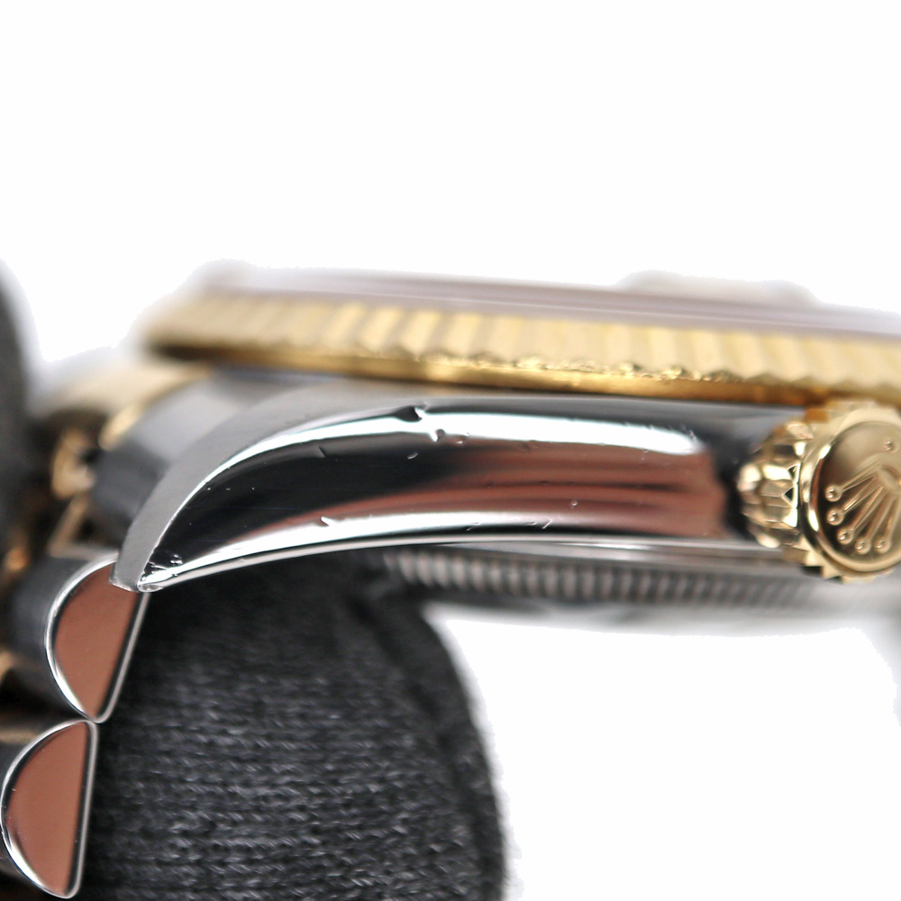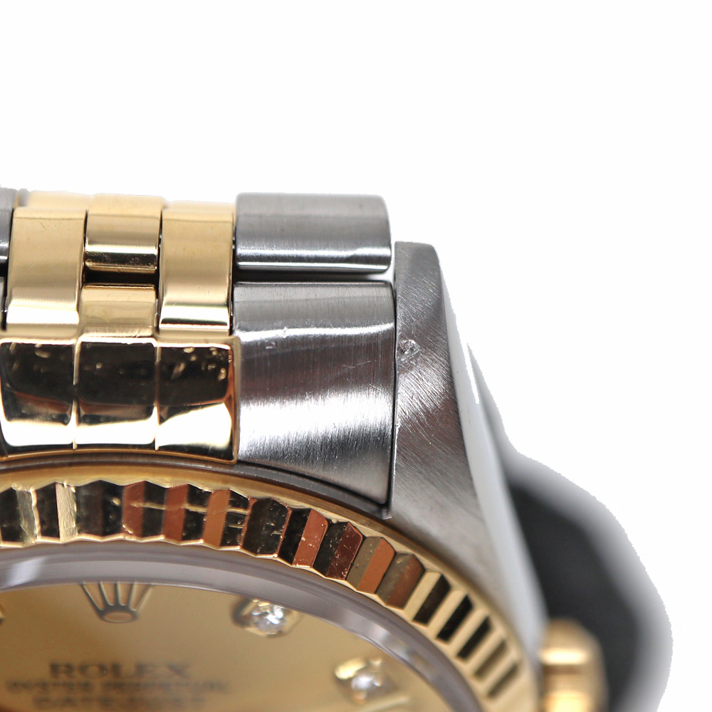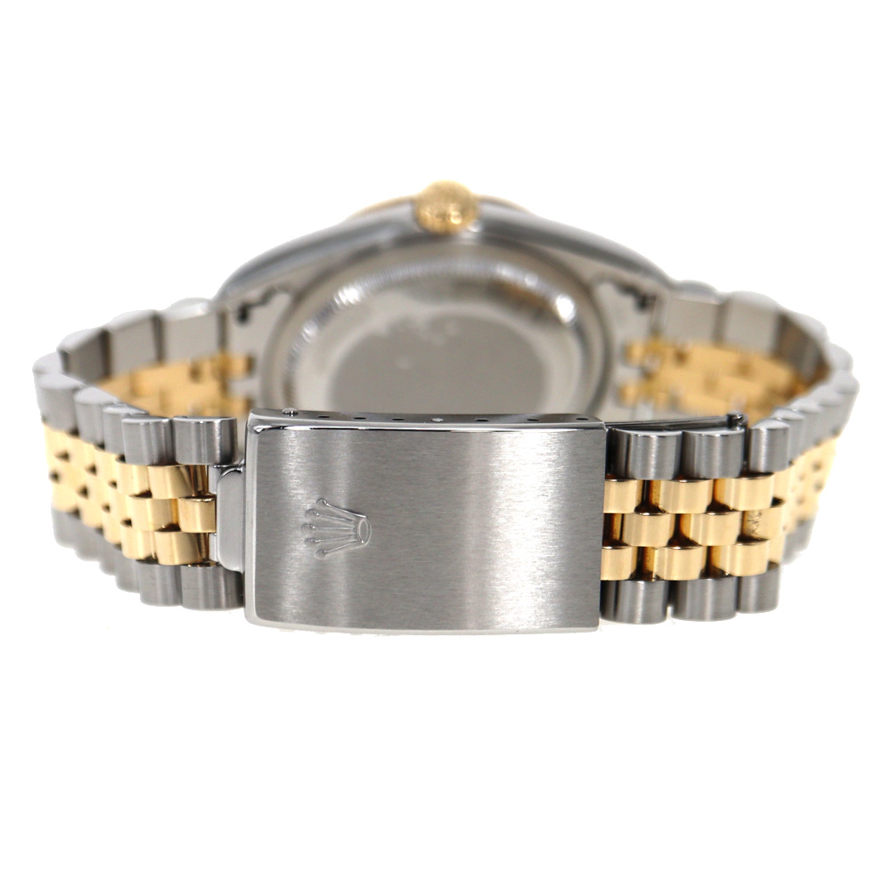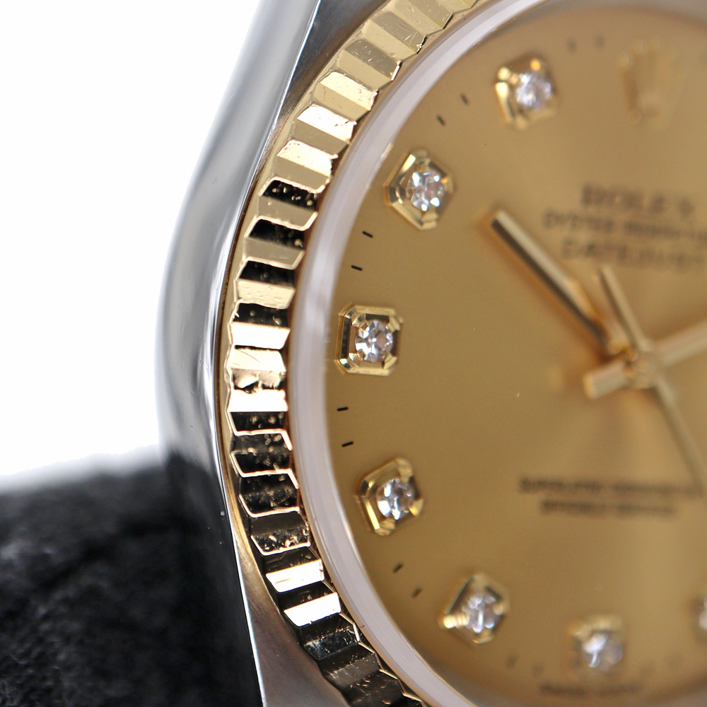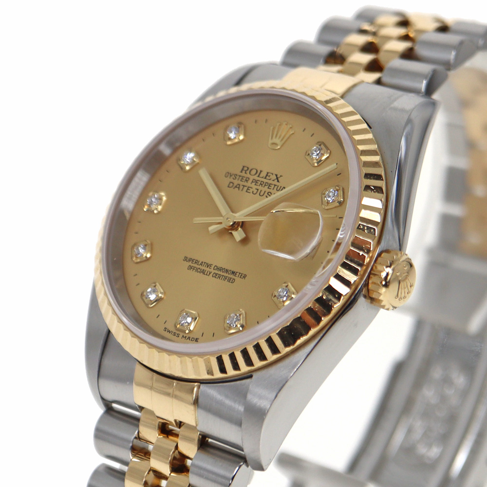 | 商品説明 | ROLEX【ロレックス】 16233G デイトジャストの紹介です。 12時に日付が瞬時に変わる「デイトジャスト機構」、強い耐久性携えた「オイスターケース」、高精度な自動巻き機構「パーペチュアル」のロレックス3大発明がつまったロレックスの歴史がぎゅっと詰まった1本です。 シャンパンゴールドのダイアルにインデックス部分にダイヤモンドがデザインされたお時計です。 ブレスレットにもイエローゴールドが入っており、つけるだけで華やかさを演出できます。