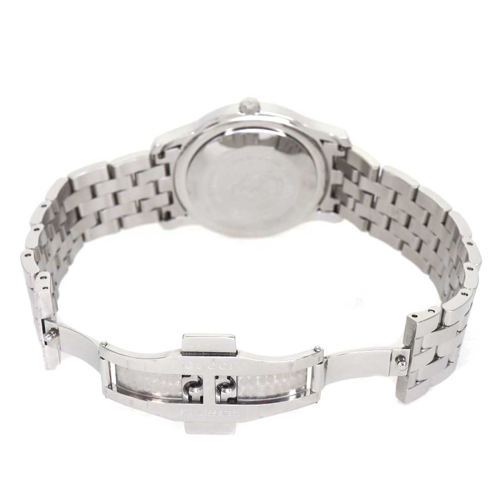 日付部分にシェリーラインがデザインされており、グッチらしさを感じるお時計です。 デイト機能、日常生活防水が備わっており、機能面でも日常で使いやすい性能となっております。 スッキリとしたお時計なので、ビジネスシーンからプライベートまで活躍します。 お探しの方はこの機会にぜひいかがでしょうか。