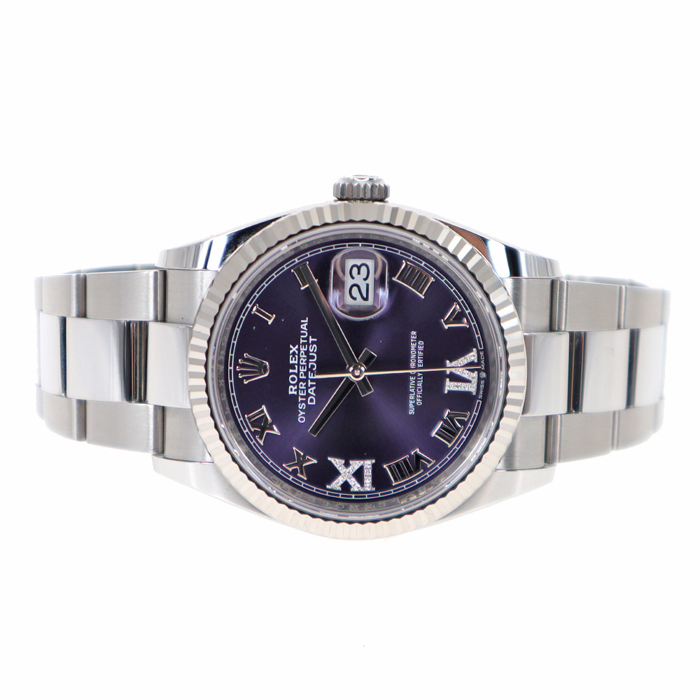 | 商品説明 | ROLEX【ロレックス】 126234 デイトジャスト36 紹介です。 ロレックスの中でも人気の高いデイトジャスト。 パープルの文字盤に6時位置にパヴェダイヤがあしらわれた仕様になっており通常のデイトジャストより特別感のあるオーベルジーヌ。 重量感もあり着け心地も抜群です。