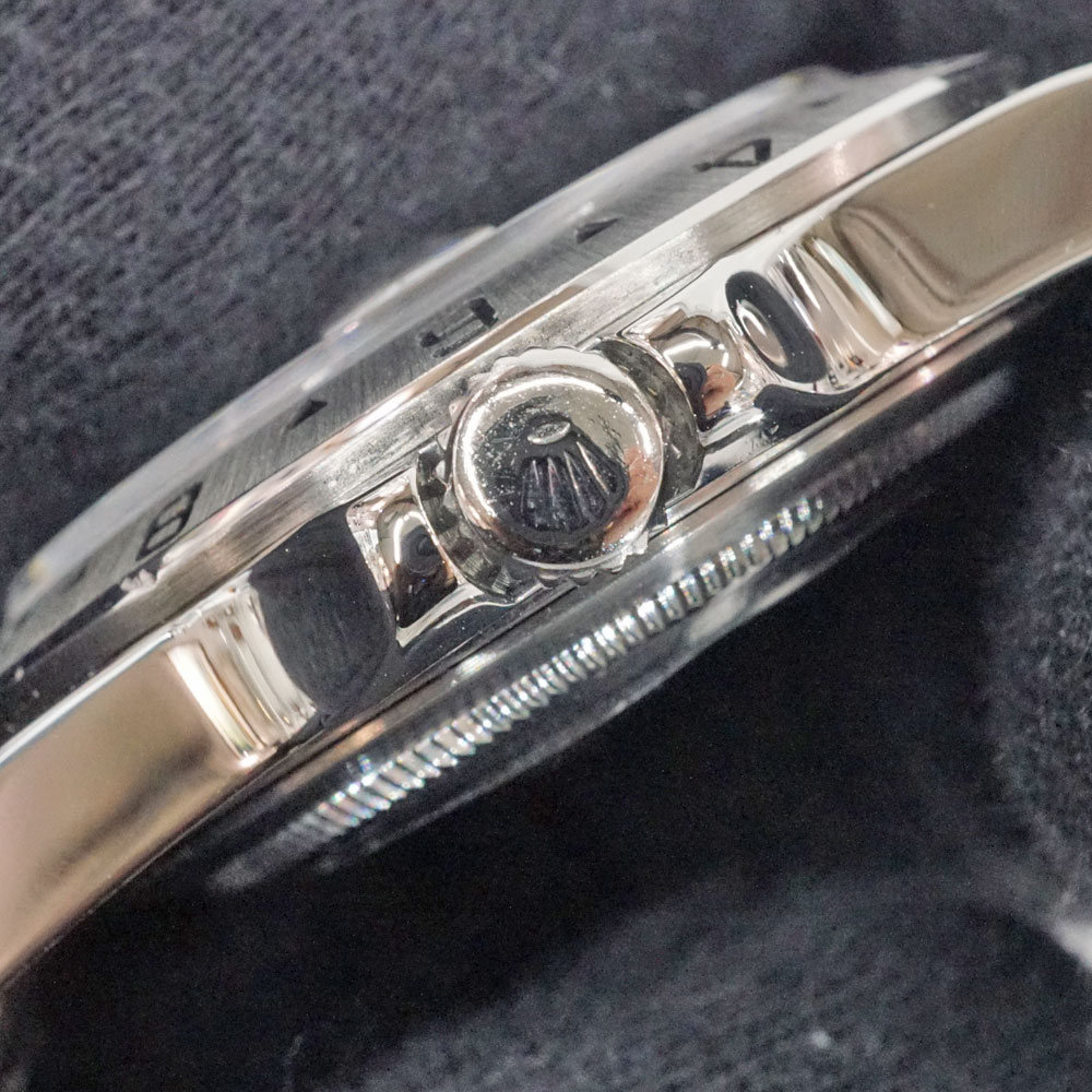両支え型のテンプ受けを採用しCal.3185を搭載する「Ref.16570」は 実用的なGMT機能とデザイン性の高さから、誕生から30年以上を経た現在でも高い人気を誇っています。