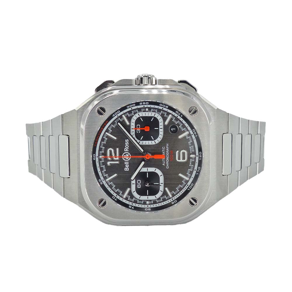 | 商品説明 | 「BR 05 クロノグラフ」は、ケースとブレスレットがシームレスに融合したデザインを採用し、まるで一体成型のような洗練されたフォルムが特徴です。42mmのケースサイズが手元に確かな存在感をもたらし、ひと目で印象に残る力強さを演出します。さらに、ブレスレットの角度や流れは緻密に設計されており、さまざまな手首に自然に馴染み、シーンを選ばず一日中快適な装着感を実現しています。