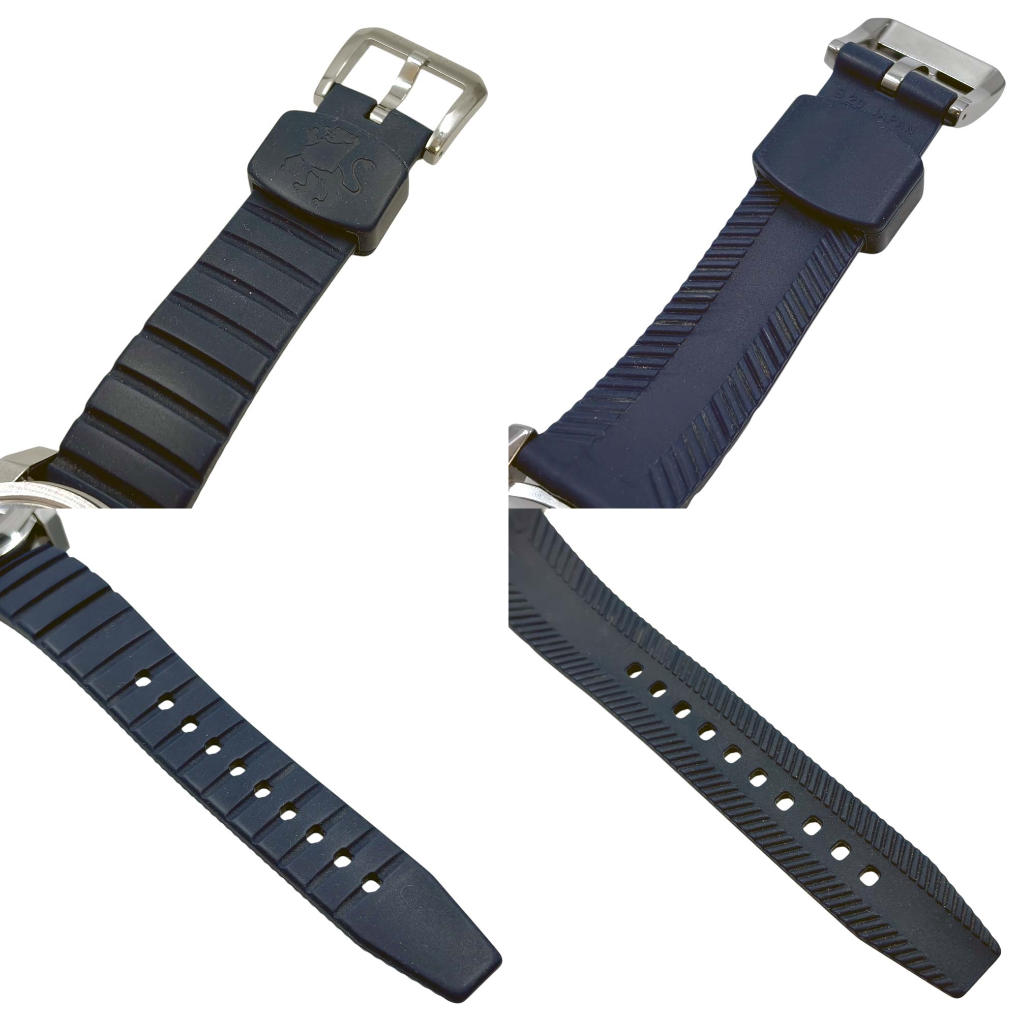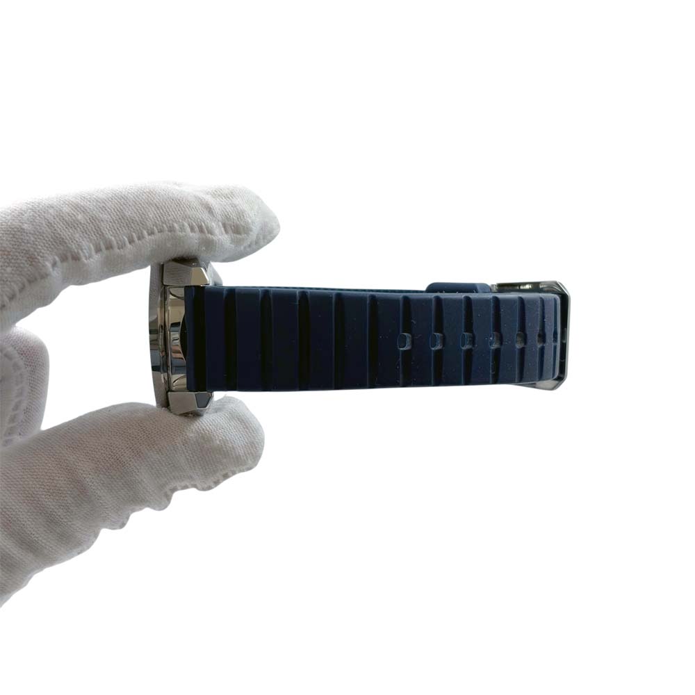 | 素材 | ケース:SS(ステンレススチール) ブレスレット:Rubber(ラバー) ダイヤル(色):ブルー 風防素材:サファイアクリスタル |