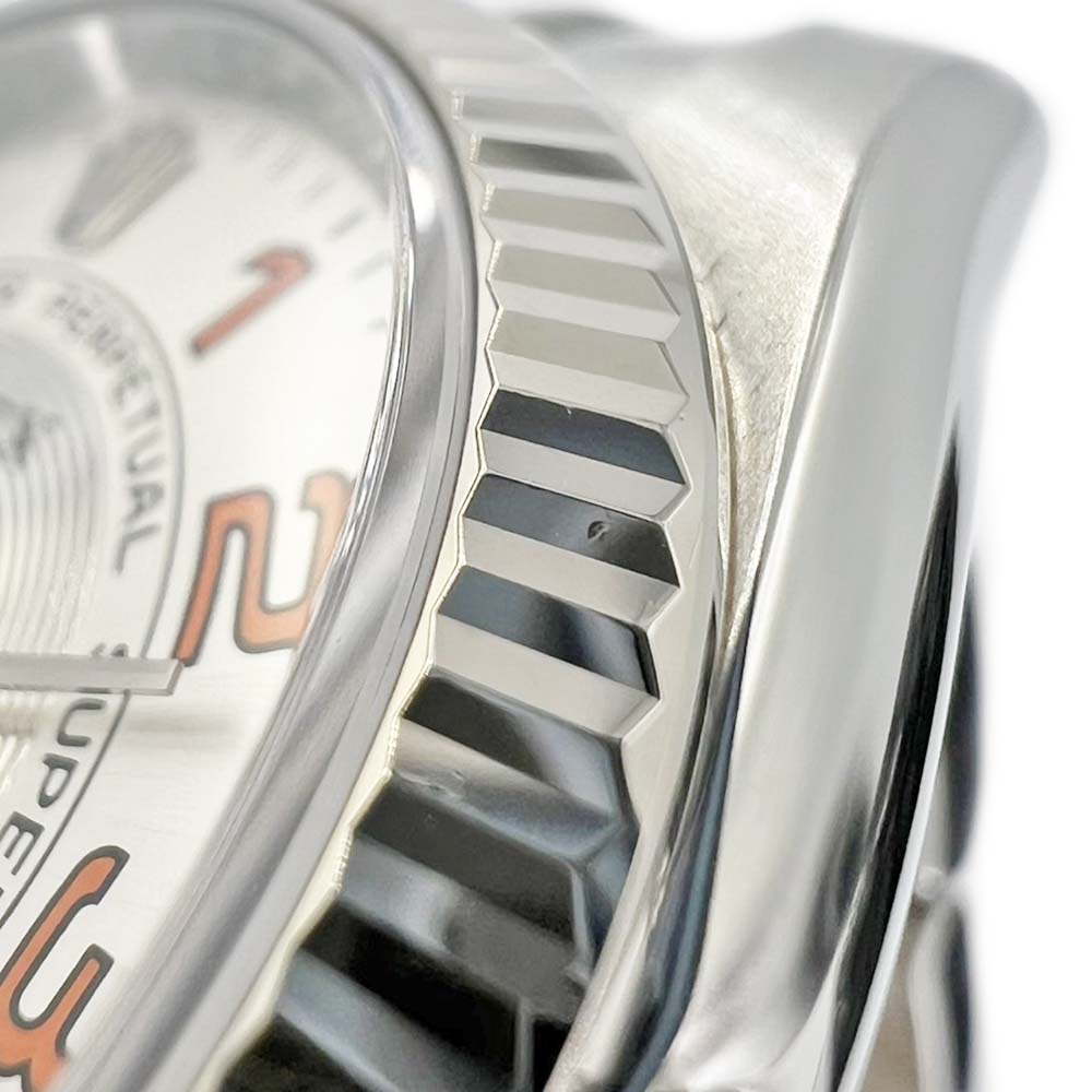 | 素材 | ケース:K18 WG(ホワイトゴールド)×SS(ステンレス) ブレス:SS(ステンレススチール) ダイヤル:シルバー・オレンジ ガラス:サファイアクリスタル |