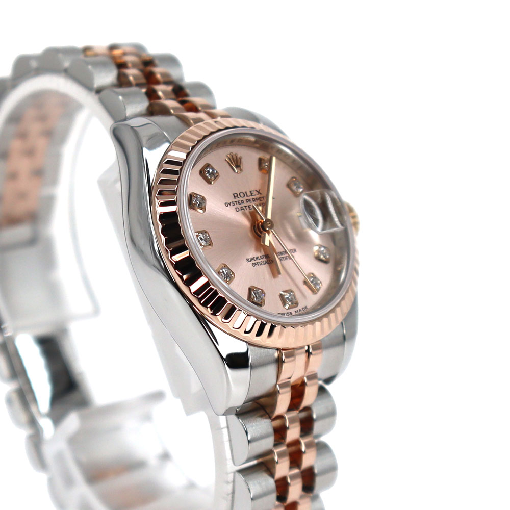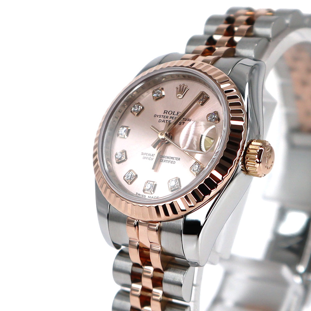 | 素材 | ケース:SS(ステンレススチール)×K18PG(ピンクゴールド) ブレス:SS(ステンレススチール)×K18PG(ピンクゴールド) ダイヤル:ピンク×10Pダイヤ ガラス:サファイアクリスタル |