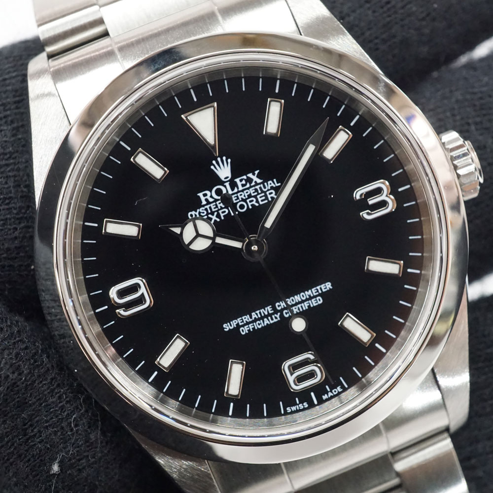 創業以来目指していた実用時計の究極として誕生した探検ウォッチ・エクスプローラー1はブラック文字盤に3・6・9のインデックスというデザインです。