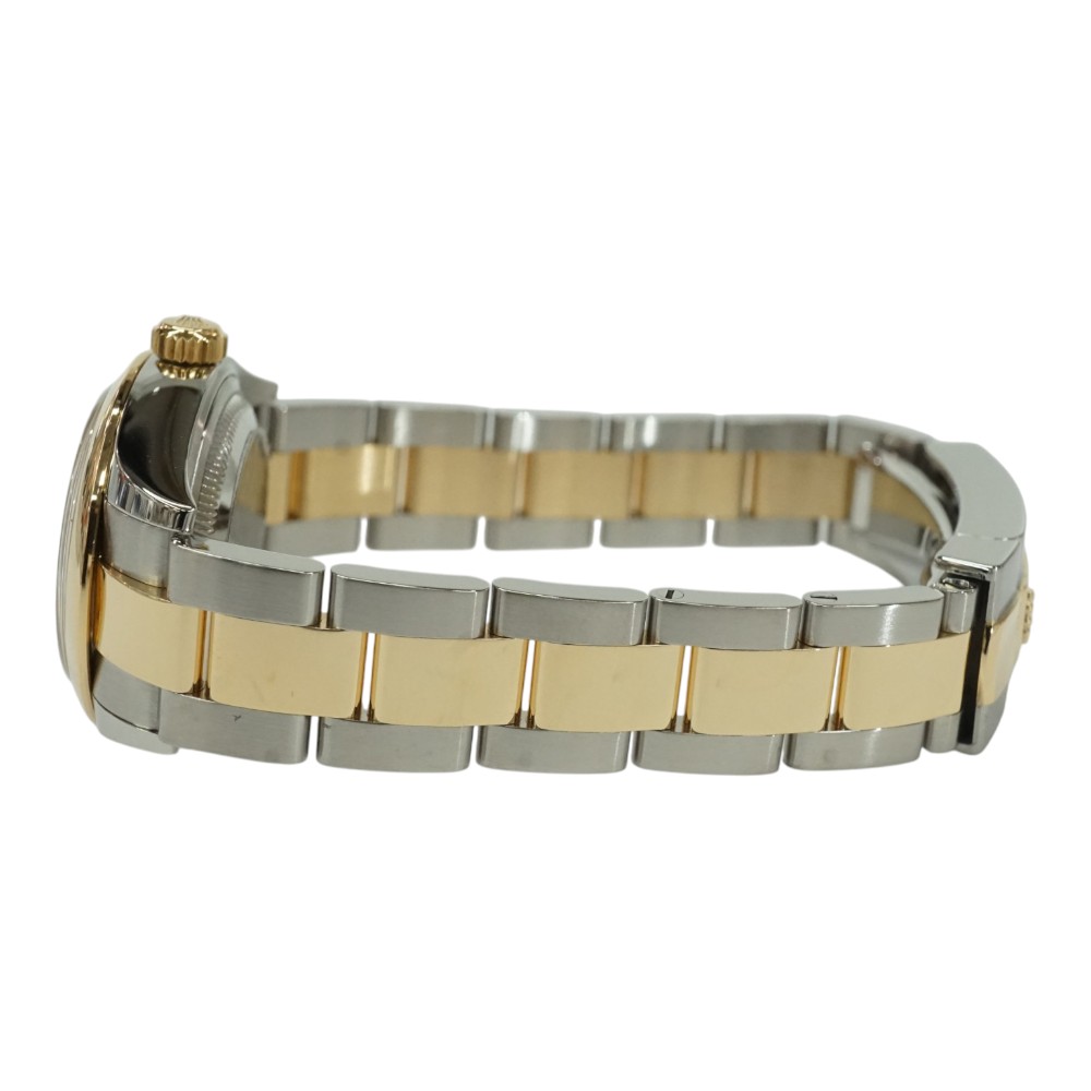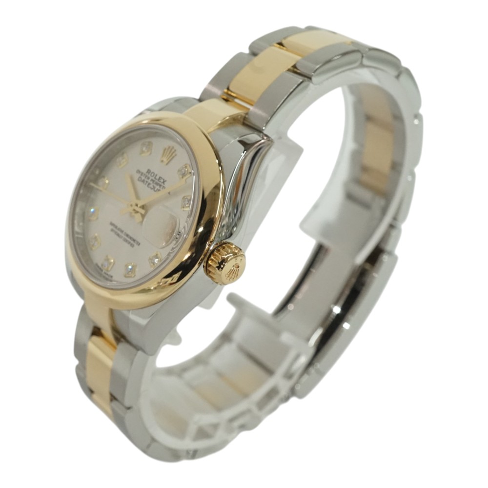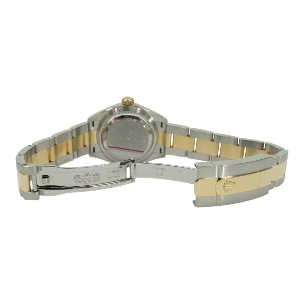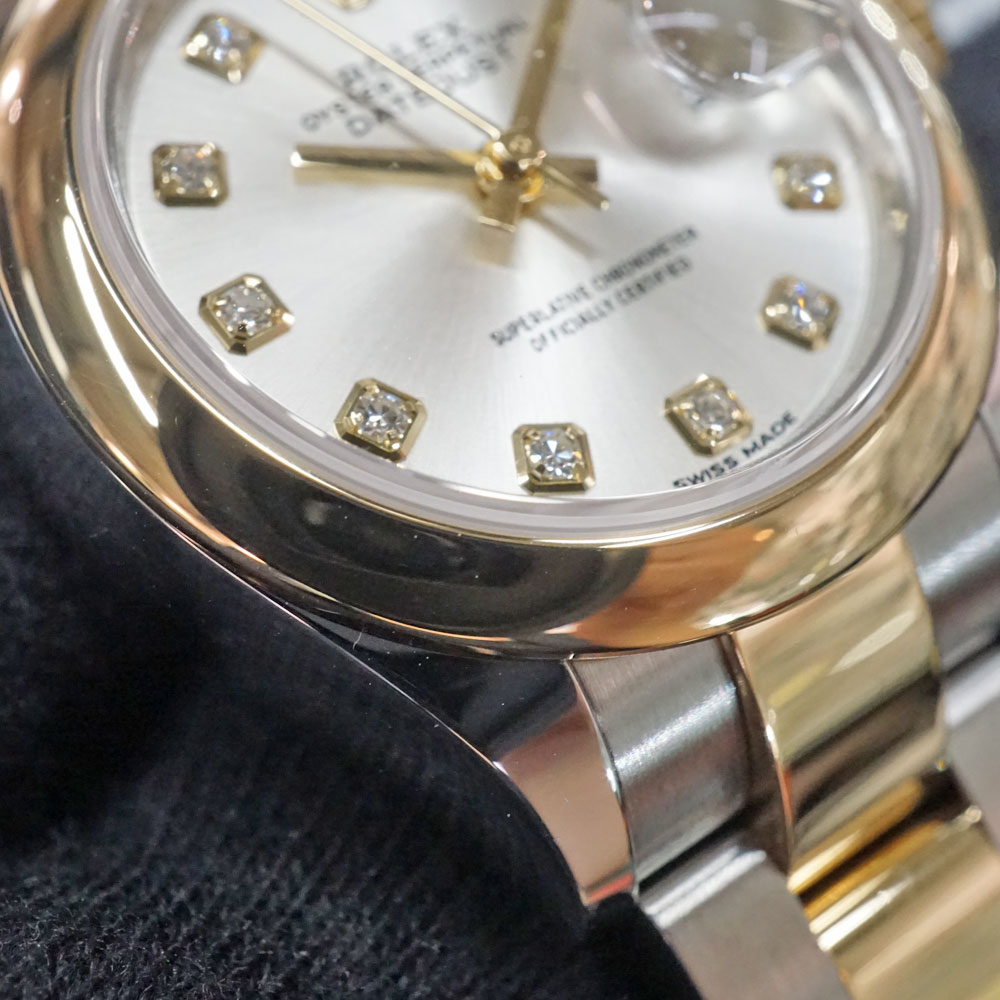 こちらはシャンパン文字盤に10ポイントのダイヤモンドをセッティングした華やかなモデルで、ブレスレットにはオイスターブレスを合わせてカジュアル感も演出しています。