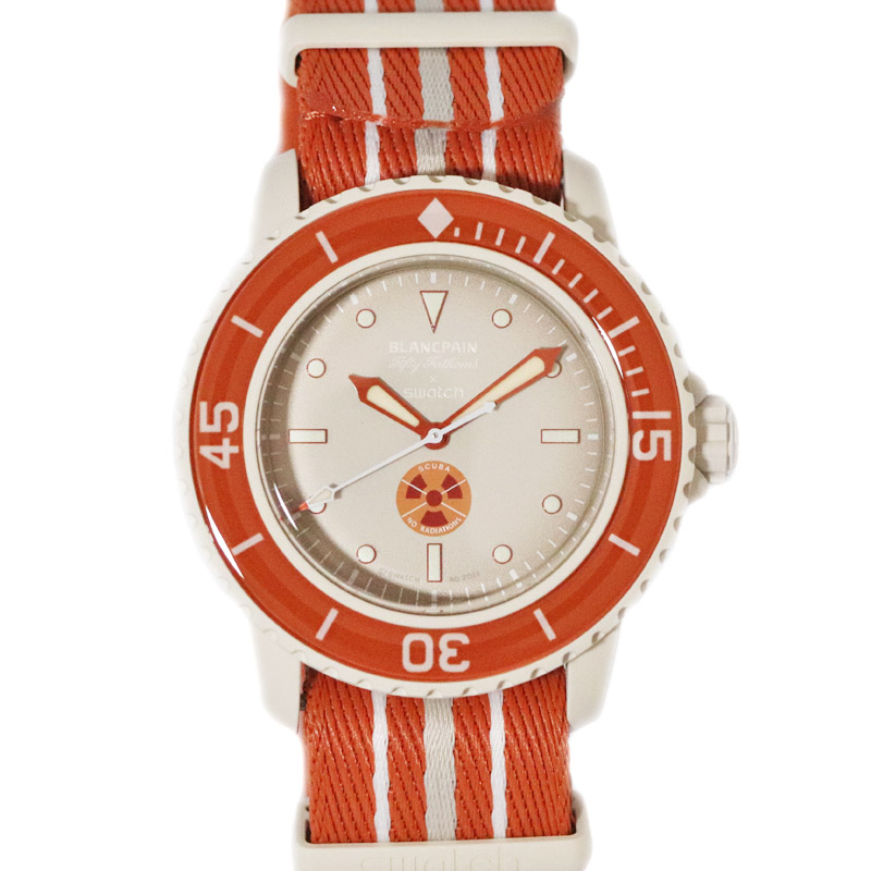 スウォッチ Swatch ブランパン×スウォッチ S035N100 フィフティファゾムス アークティックオーシャン ベージュ オレンジ 【中古】
