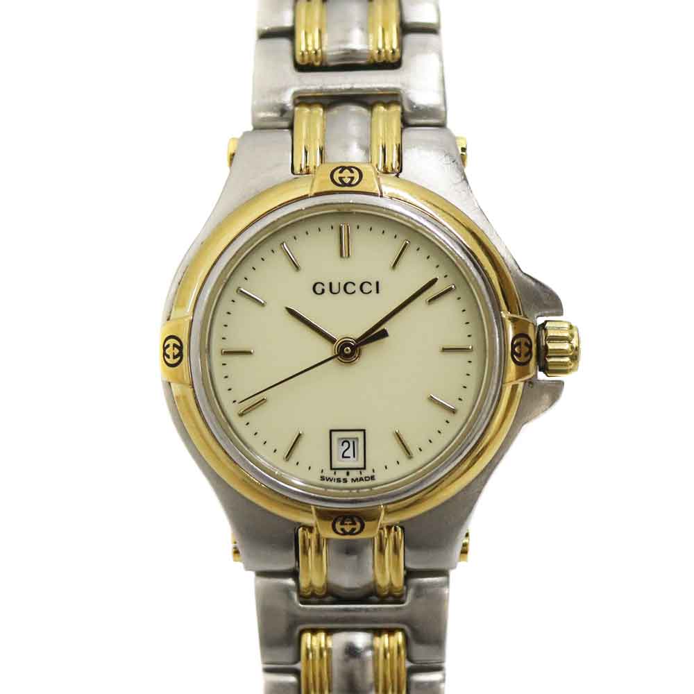 グッチ Gucci 9040L レディース クォーツ 腕時計 アイボリー文字盤 コンビデザイン【中古】